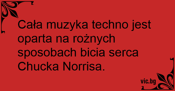 Cała muzyka techno jest oparta na rożnych sposobach bicia serca Chucka Norrisa.