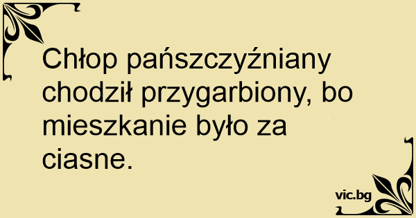 Chłop pańszczyźniany chodził przygarbiony, bo mieszkanie było za ciasne.