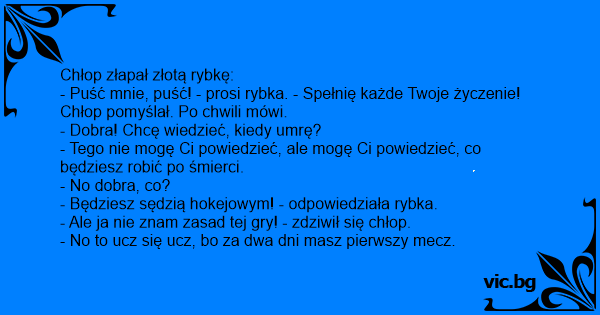 - Będziesz sędzią hokejowym! - odpowiedziała rybka.