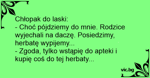 - Choć pójdziemy do mnie. Rodzice wyjechali na daczę. Posiedzimy, herbatę wypijemy...