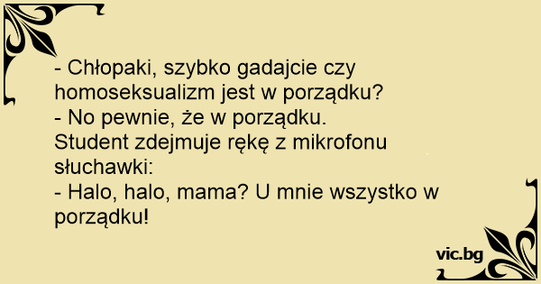 - Chłopaki, szybko gadajcie czy homoseksualizm jest w porządku?