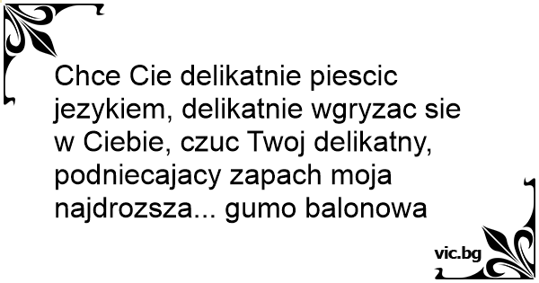Chce Cie delikatnie piescic jezykiem, delikatnie wgryzac sie w Ciebie, czuc Twoj delikatny, podniecajacy zapach moja najdrozsza... gumo balonowa