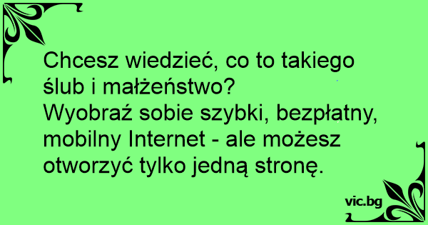 - Ce înseamnă căsătoria? - Să ai trafic nelimitat la internet, dar să se deschidă doar un singur site.