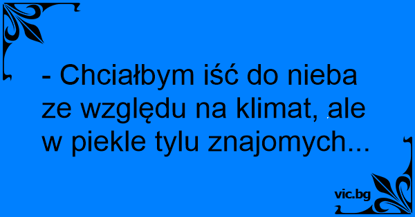- Chciałbym iść do nieba ze względu na klimat, ale w piekle tylu znajomych...