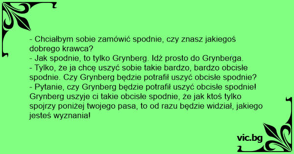 - Chciałbym sobie zamówić spodnie, czy znasz jakiegoś dobrego krawca?