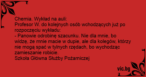 Profesor W. do kolejnych osób wchodzących już po rozpoczęciu wykładu: