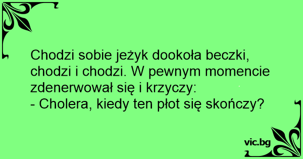 Chodzi sobie jeżyk dookoła beczki, chodzi i chodzi. W pewnym momencie zdenerwował się i krzyczy: