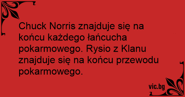 Chuck Norris znajduje się na końcu każdego łańcucha pokarmowego. Rysio z Klanu znajduje się na końcu przewodu pokarmowego.
