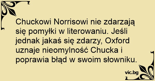 Chuckowi Norrisowi nie zdarzają się pomyłki w literowaniu. Jeśli jednak jakaś się zdarzy, Oxford uznaje nieomylność Chucka i poprawia błąd w swoim słowniku.