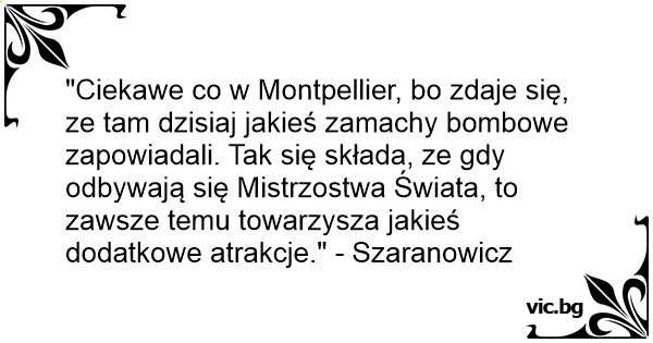 "Ciekawe co w Montpellier, bo zdaje się, ze tam dzisiaj jakieś zamachy bombowe zapowiadali. Tak się składa, ze gdy odbywają się Mistrzostwa Świata, to zawsze temu towarzysza jakieś dodatkowe atrakcje." - Szaranowicz