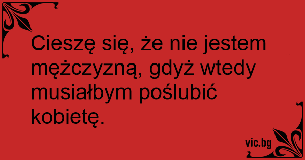 Cieszę się, że nie jestem mężczyzną, gdyż wtedy musiałbym poślubić kobietę.
