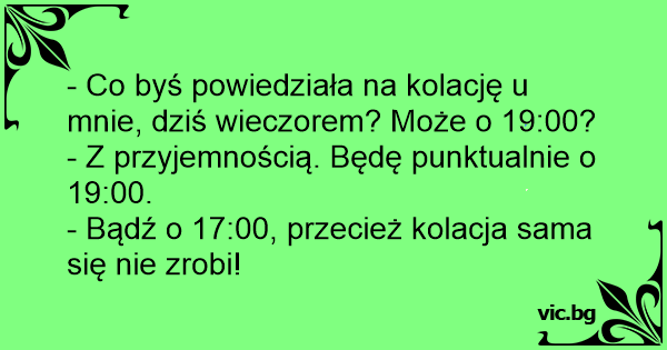 - Bądź o 17:00, przecież kolacja sama się nie zrobi!