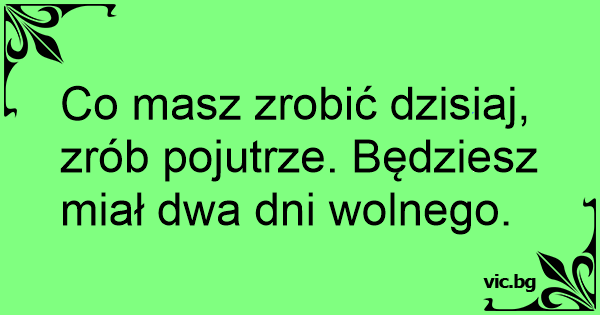 Co masz zrobić dzisiaj, zrób pojutrze. Będziesz miał dwa dni wolnego.