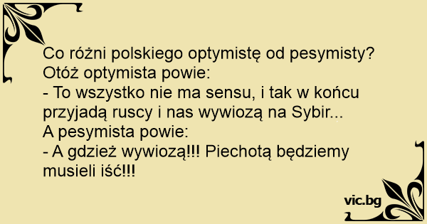 Co różni polskiego optymistę od pesymisty? Otóż optymista powie: