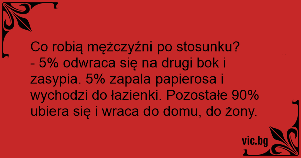- 5% odwraca się na drugi bok i zasypia. 5% zapala papierosa i wychodzi do łazienki. Pozostałe 90% ubiera się i wraca do domu, do żony.