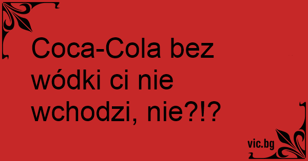 Coca-Cola bez wódki ci nie wchodzi, nie?!?