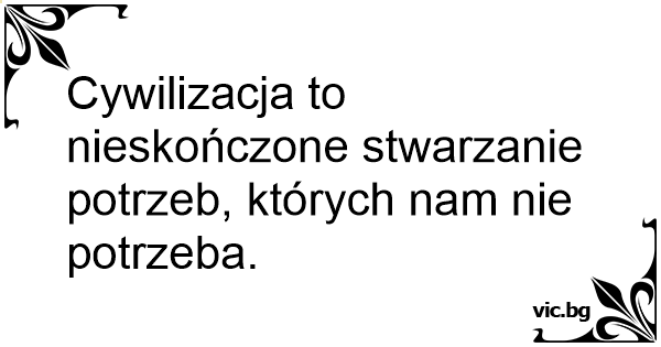 Cywilizacja to nieskończone stwarzanie potrzeb, których nam nie potrzeba.