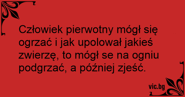 Człowiek pierwotny mógł się ogrzać i jak upolował jakieś zwierzę, to mógł se na ogniu podgrzać, a później zjeść.
