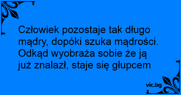 Człowiek pozostaje tak długo mądry, dopóki szuka mądrości. Odkąd wyobraża sobie że ją już znalazł, staje się głupcem