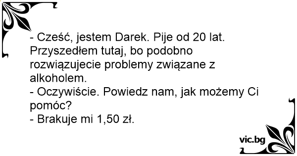- Cześć, jestem Darek. Pije od 20 lat. Przyszedłem tutaj, bo podobno rozwiązujecie problemy związane z alkoholem.