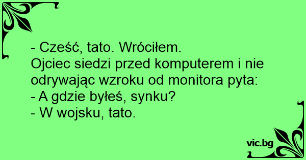 Ojciec siedzi przed komputerem i nie odrywając wzroku od monitora pyta: