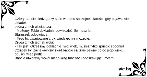 Dziadek był zaciekawiony skąd babcie są takie pewne co do jego wieku, opuścił więc portki.