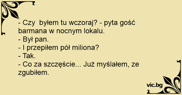 - Czy byłem tu wczoraj? - pyta gość barmana w nocnym lokalu.