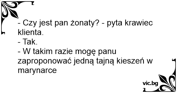- Czy jest pan żonaty? - pyta krawiec klienta.