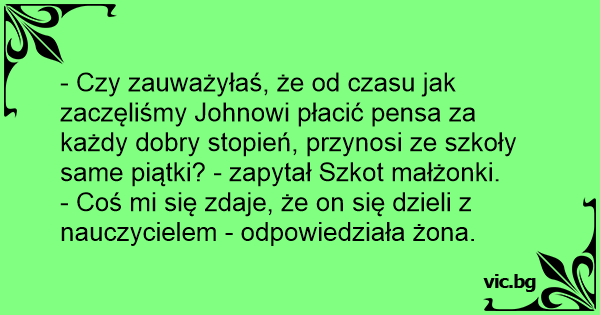 - Coś mi się zdaje, że on się dzieli z nauczycielem - odpowiedziała żona.