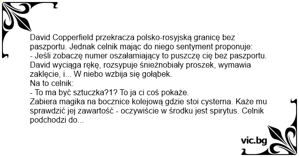 David Copperfield przekracza polsko-rosyjską granicę bez paszportu. Jednak celnik mając do niego sentyment proponuje: