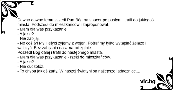 Nieco przybity Pan Bóg wrócił na pustynie. Jacyś barbarzyńcy paśli tam swoje stada. Zrezygnowany Bóg spytał.