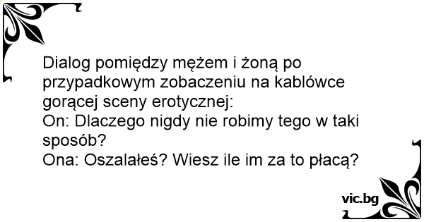 Dialog pomiędzy mężem i żoną po przypadkowym zobaczeniu na kablówce gorącej sceny erotycznej: