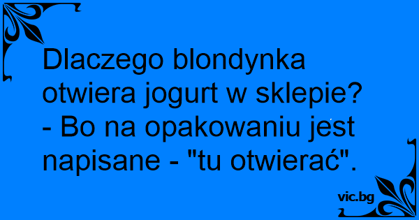 Знаєте чому блондинки їдять йогурти в магазині? Тому що на йогурті написано: "Відкривати тут".