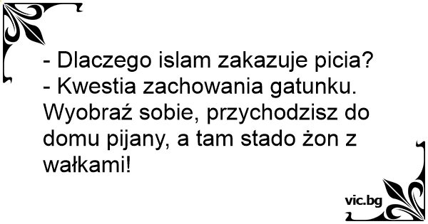 - Kwestia zachowania gatunku. Wyobraź sobie, przychodzisz do domu pijany, a tam stado żon z wałkami!