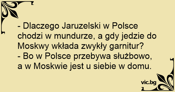 - Dlaczego Jaruzelski w Polsce chodzi w mundurze, a gdy jedzie do Moskwy wkłada zwykły garnitur?