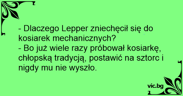 - Dlaczego Lepper zniechęcił się do kosiarek mechanicznych?