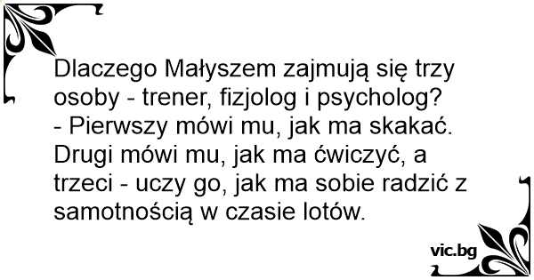 Dlaczego Małyszem zajmują się trzy osoby - trener, fizjolog i psycholog?