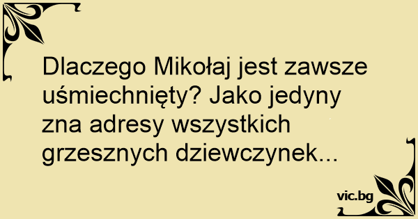 Dlaczego Mikołaj jest zawsze uśmiechnięty? Jako jedyny zna adresy wszystkich grzesznych dziewczynek...