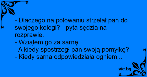 - Dlaczego na polowaniu strzelał pan do swojego kolegi? - pyta sędzia na rozprawie.