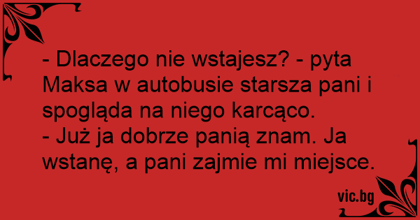 - Dlaczego nie wstajesz? - pyta Maksa w autobusie starsza pani i spogląda na niego karcąco.
