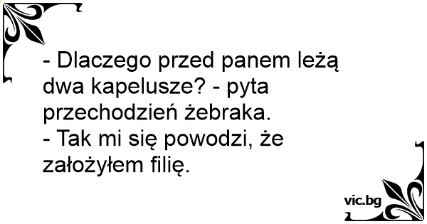 - Dlaczego przed panem leżą dwa kapelusze? - pyta przechodzień żebraka.