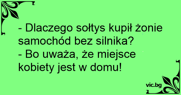 - Dlaczego sołtys kupił żonie samochód bez silnika?