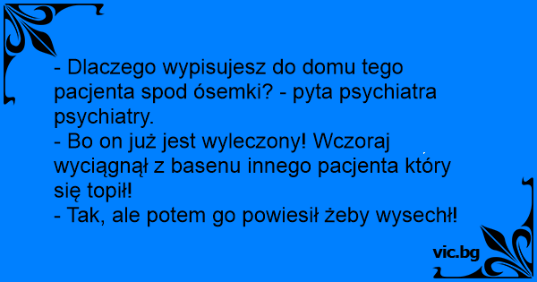 - Dlaczego wypisujesz do domu tego pacjenta spod ósemki? - pyta psychiatra psychiatry.