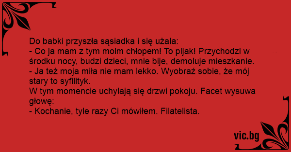 - Kochanie, tyle razy Ci mówiłem. Filatelista.