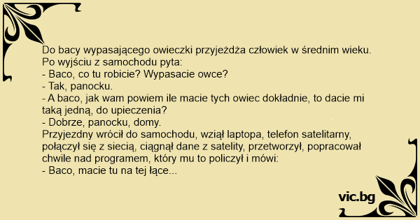 - A baco, jak wam powiem ile macie tych owiec dokładnie, to dacie mi taką jedną, do upieczenia?