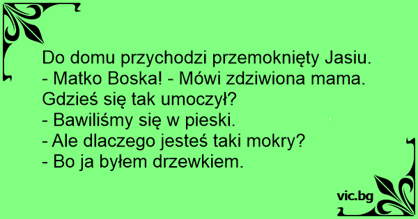 - Matko Boska! - Mówi zdziwiona mama. Gdzieś się tak umoczył?