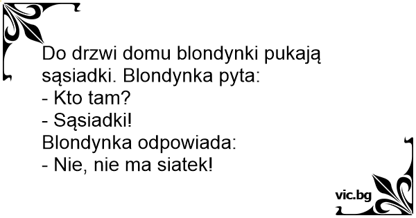 Do drzwi domu blondynki pukają sąsiadki. Blondynka pyta: