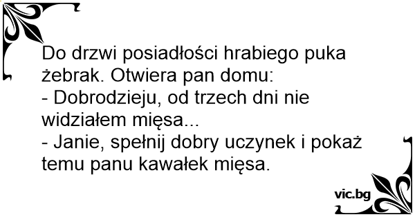 Do drzwi posiadłości hrabiego puka żebrak. Otwiera pan domu: