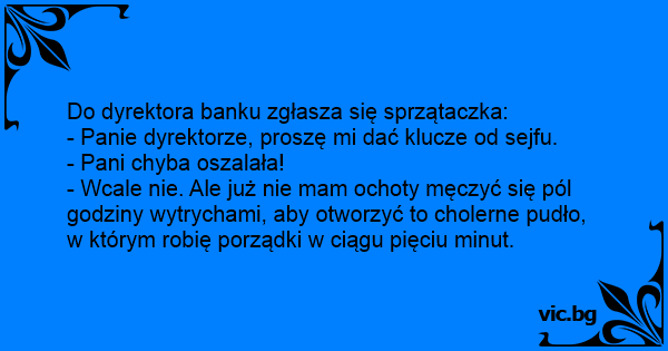 - Panie dyrektorze, proszę mi dać klucze od sejfu.
