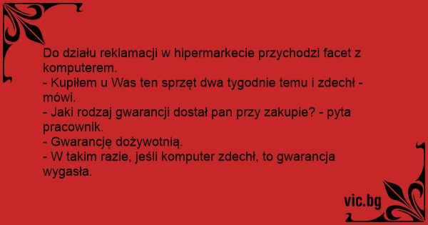 - Jaki rodzaj gwarancji dostał pan przy zakupie? - pyta pracownik.